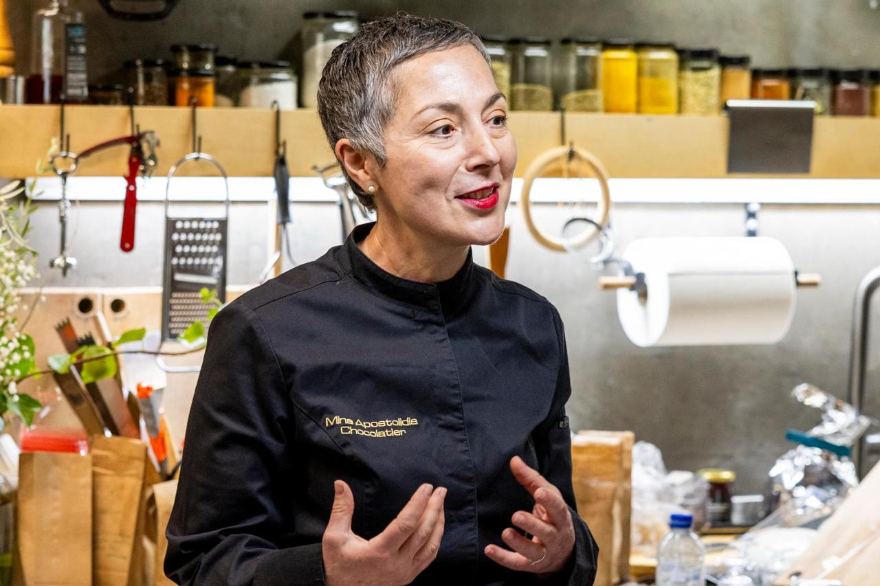Μίνα Αποστολίδη: Παράγω στο Βέλγιο, αξιοποιώντας το know-how της βελγικής σοκολατοποιίας. Οι συνταγές μου όμως είναι εμπνευσμένες από το ελληνικό μου κληροδότημα: μνήμες, παραδόσεις, προϊόντα, αλλά και ελληνικά γλυκά. Με έναν τρόπο, ακουμπάω και στις δύο χώρες. Ίσως τελικά να είμαι κάτι δικό μου, που γεννήθηκε ανάμεσα σε αυτές τις δύο ταυτότητες.
