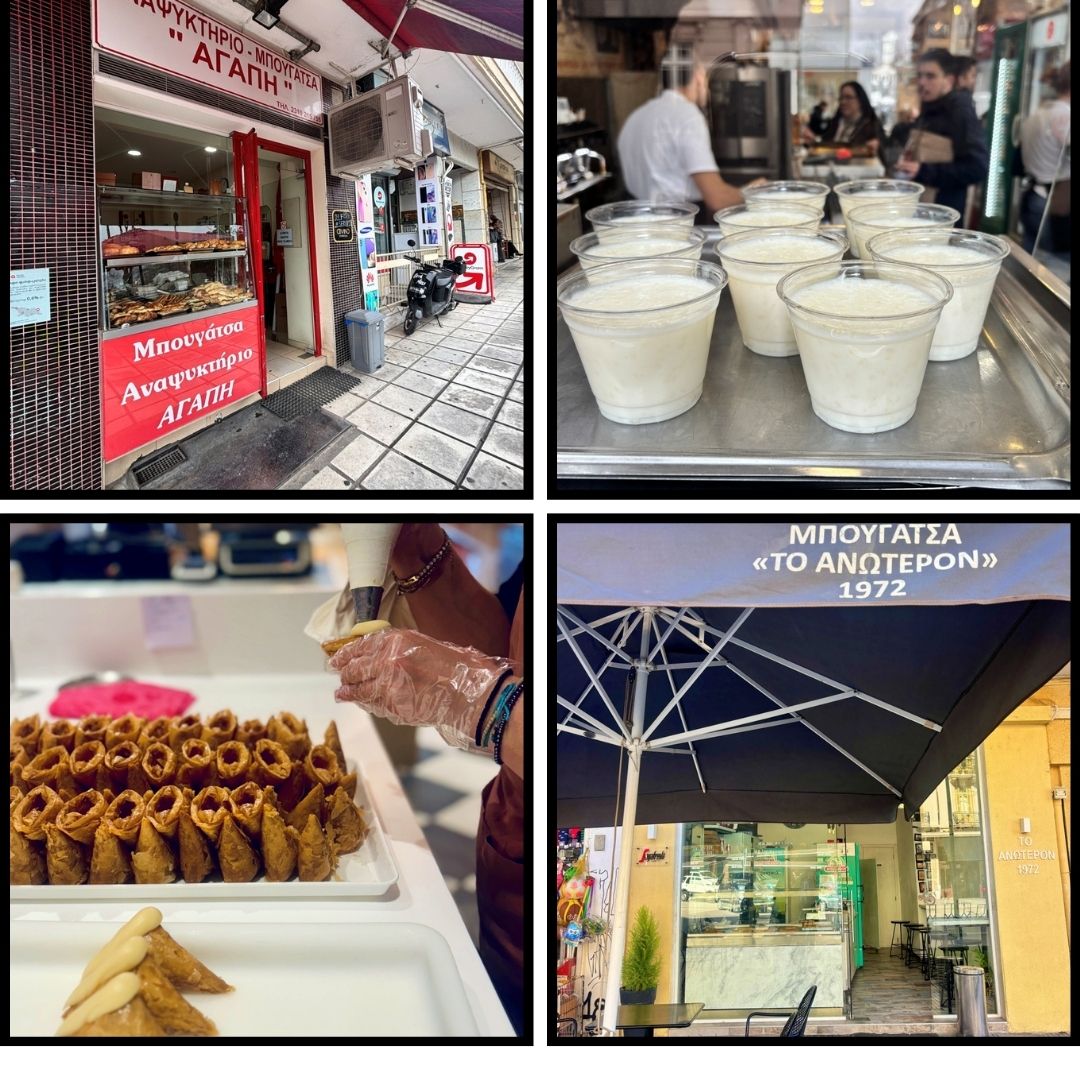 Εδώ είναι η ελληνική Μέκκα του σιροπιαστού. Στον Ελενίδη για τα θρυλικά τρίγωνα Πανοράματος και το παγωτό καϊμάκι. Στο Ζάννε για τουλούμπες και κουρκουμπίνια που έρχονται καθημερινά από το Βελβεντό Κοζάνης. Στον Μουρούζη, όπου μπαίνεις και μυρίζει καλό βούτυρο, για αρμενοβίλ και βουτήματα. Στον Νικηφόρο για γαλακτομπούρεκο, κανταΐφι και μπακλαβά. Και στο Τζένεραλ, της οικογένειας ERGON, για ρετρό θεσσαλονικιώτικα γλυκά, κρέμες, ρυζόγαλα και μπουγάτσα.