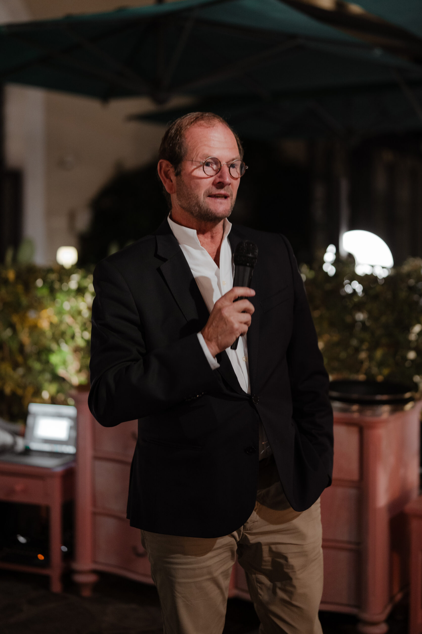 Η συζήτησή μας πραγματοποιήθηκε στο εστιατόριο Selene, στο πλαίσιο της Vedema 2025, που διοργανώνεται από τον Γιάννη Καρακάση MW και τον όμιλο Katikies. Ο Lurton έχει επισκεφθεί πολλές φορές την Ελλάδα – πρόσφατα στην Κέα – όμως η Σαντορίνη ήταν για εκείνον μια πρώτη εμπειρία. Δοκίμασε ένα Ασύρτικο του 2019, το οποίο περιέγραψε ως κρασί «με ενέργεια και καθαρή εξέλιξη». Δεν μένει σε τεχνικές λεπτομέρειες· γρήγορα μετατοπίζει τη συζήτηση στη σχέση των ανθρώπων με το κρασί.